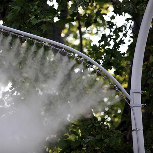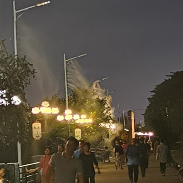 路燈除塵噴霧|路燈桿噴霧設(shè)備|路燈桿噴淋抑塵系統(tǒng)包括濾水器、電磁閥、高壓泵、電磁閥、輸送管道、霧化噴頭、控制裝置。待霧化水由進(jìn)液管進(jìn)入濾水器,經(jīng)濾水器將水中雜質(zhì)與懸浮物濾除后,經(jīng)過(guò)控制,在液體加壓裝置中被加壓成高壓后,送到霧化噴頭,在無(wú)需任何氣流和物質(zhì)的幫助下直接將液體霧化成直徑小于5微米的干霧點(diǎn),其蒸發(fā)表面積很大,當(dāng)接觸到干熱的空氣,瞬間即會(huì)被蒸發(fā),并在此過(guò)程中將大量的熱量帶走。以霧環(huán)繞某個(gè)范圍,就相當(dāng)于制造了一個(gè)濕度圍場(chǎng),而圍場(chǎng)內(nèi)的溫度最多可下降20度左右。由于人造霧霧滴直徑非常小,可長(zhǎng)期飄逸于空氣中,當(dāng)一顆顆冷霧滴碰到空中懸浮的塵埃時(shí),就會(huì)附著在塵埃上,漸漸融為一體。當(dāng)空中懸浮的塵埃重量增加到一定程度,它的重力大于浮力時(shí),它就會(huì)降落到地面上,從而達(dá)到人造霧除塵、冷霧凈化空氣的目的。冷霧設(shè)備為高科技產(chǎn)品??善鸨?、防塵、降溫等目的,大都用在自然園林、環(huán)境景觀方面。當(dāng)微風(fēng)拂過(guò),霧濃似云海般飄渺,使人們仿佛置身于霧海中,呼吸濕潤(rùn)新鮮的空氣。