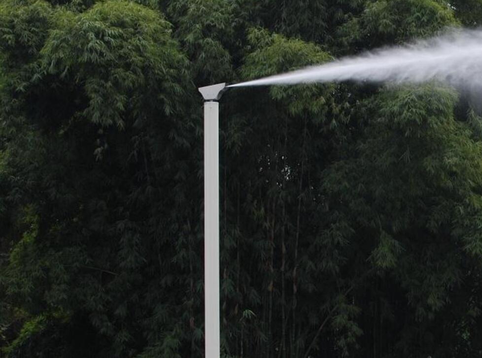 因霧化效果好、靜音低噪、高效節(jié)能、安裝方便、不占空間、智能控制等優(yōu)勢,高壓霧樁與監(jiān)測設(shè)備結(jié)合在降塵效果上能達(dá)到“1+1>2”效果。高壓霧樁可安裝空氣質(zhì)量檢測設(shè)備,實(shí)時感知溫度、濕度和PM2.5濃度變化情況,當(dāng)監(jiān)測設(shè)備監(jiān)測到該地點(diǎn)揚(yáng)塵超標(biāo)時,可遠(yuǎn)程對霧樁設(shè)置水霧噴灑的時間,實(shí)現(xiàn)智能化控制運(yùn)行、遠(yuǎn)程控制與主動防塵降塵,做到節(jié)能環(huán)保的同時增強(qiáng)降塵效果。