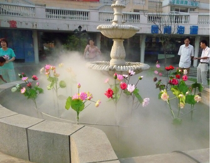 景觀霧噴廣場(chǎng)產(chǎn)品全方位多功能: 降溫、造景、加濕、防塵、防靜電、除臭、消毒、噴藥、防疫、驅(qū)蟲(chóng)、驅(qū)蚊.