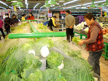 日常生活節(jié)奏的不段加快促進(jìn)了超市的發(fā)展.廣大消費(fèi)者習(xí)慣于到超市購(gòu)買所需物品。由于保鮮技術(shù)等原因.使超市蔬菜、水果、肉類、花卉、生鮮等無淪從外觀上還是新鮮程度上都遠(yuǎn)遠(yuǎn)不及農(nóng)貿(mào)市場(chǎng),降低了市場(chǎng)競(jìng)爭(zhēng)能力,失水會(huì)造成農(nóng)產(chǎn)品的失重和失鮮,降低耐貯性和抗病性,加速了農(nóng)產(chǎn)品腐爛。
